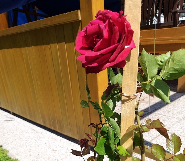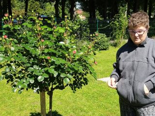 V našem terapevtskem vrtu je zacvetela vrtnica, ki smo jo posadili ob 50 letnici zavoda. Poleg vrtnice se pripravlja na cvetenje tulipanovec, maline, borovnice in ribez pa bodo obilno obrodili. Stebelna vrtnica sorte Leonardo da Vinci še nikoli ni bila tako bujna. Zelenjava in zelišča na naših gredicah so vsak dan večja in danes smo prvič to sezono porezali  zelišča, ki bodo v jeseni na voljo za prodajo v naši zeliščni soli.