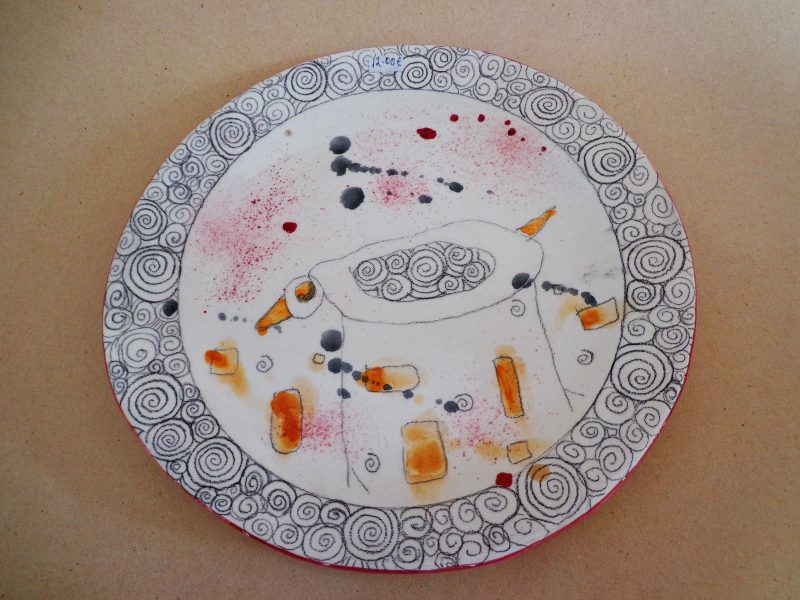 Keramični krožnik, ročno poslikan z unikatnim motivom. Motivi se spreminjajo, zato pošljite povpraševanje za trenutno razpoložljivo zalogo. Cena vključuje DDV.