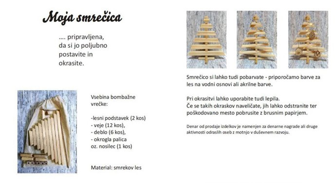 Lesena sestavljiva smrečica iz smrekovega lesa. Paket vsebuje: